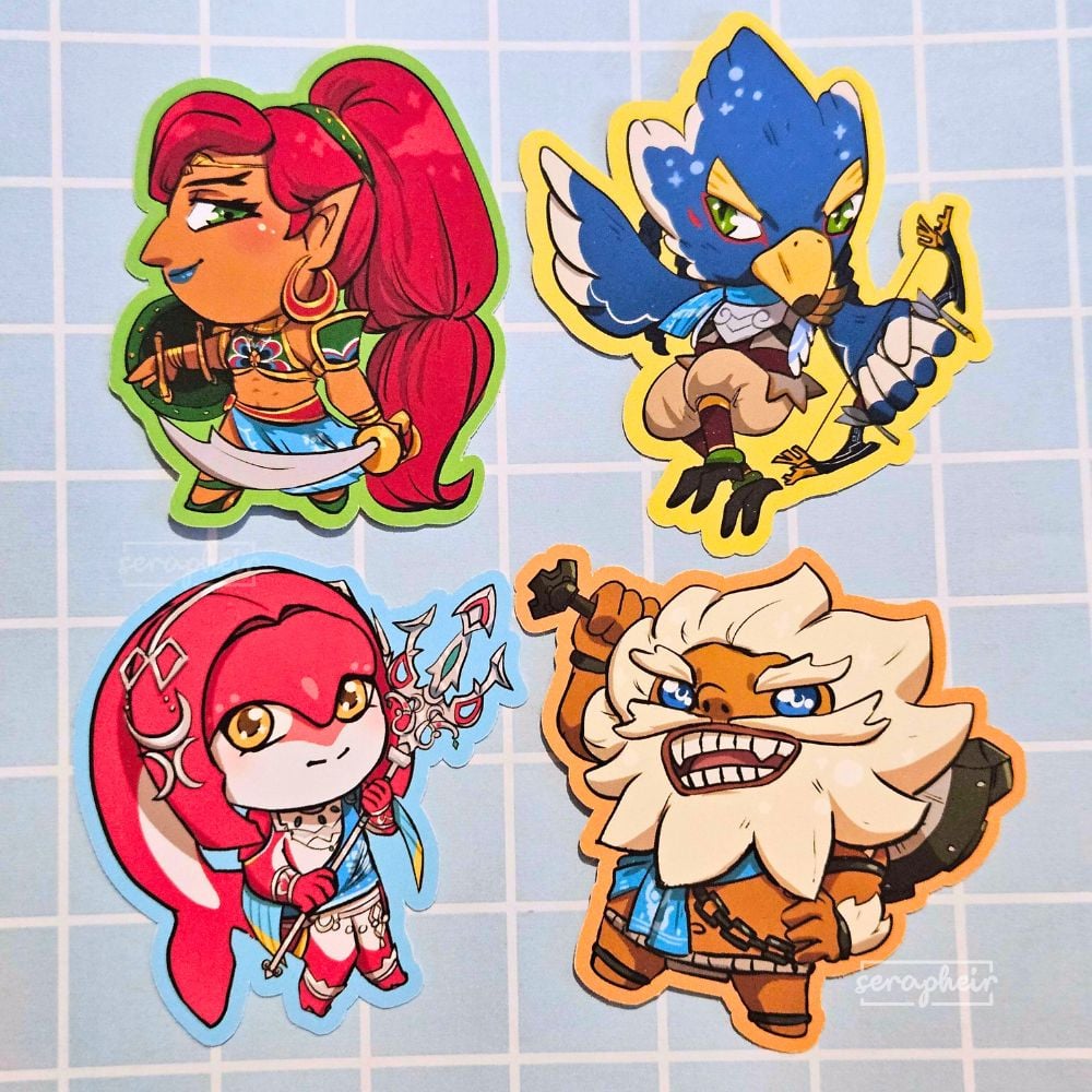 Stickers featuring characters from Breath of the Wild - Urbosa, Revali, Mipha, and Daruk.