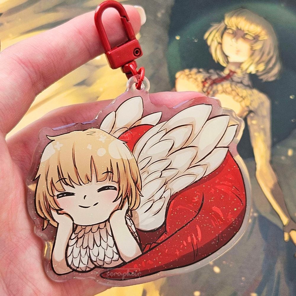 An acrylic charm featuring Chimera Falin from Dungeon Meshi / Delicious in Dungeon.