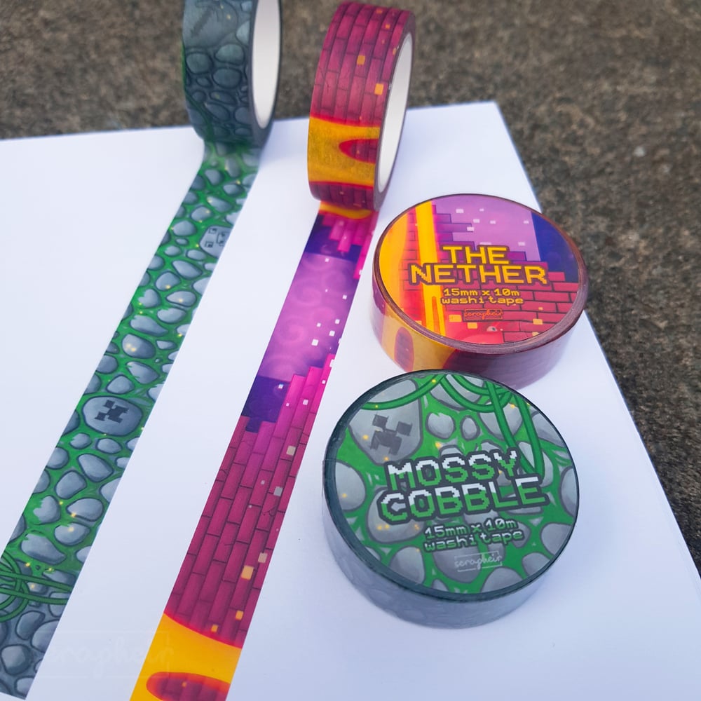 Mossy Cobble / The Nether - Minecraft themed washi tape! 🌳