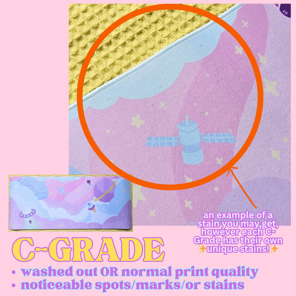 B-Grade: Washed out print (lighter colours than intended), minimal or no stains